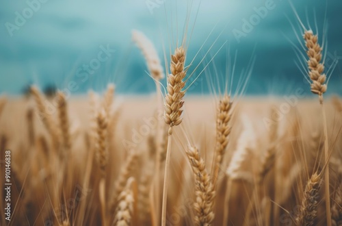Fototapeta premium Golden Wheat Field Under Dramatic Cloudy Sky
