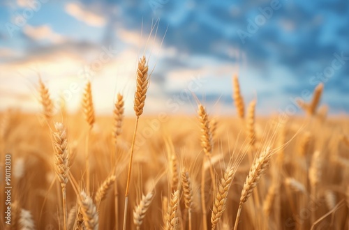 © olegganko, Fototapeta premium Golden Wheat Field Under Dramatic Cloudy Sky at Dusk