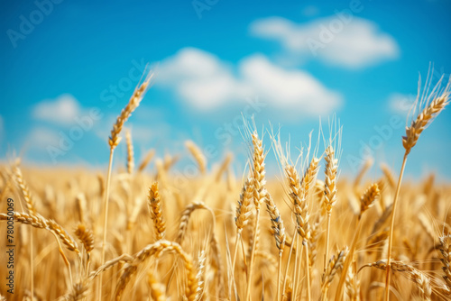 Fototapeta premium Golden Wheat Field Under Sunny Blue Sky
