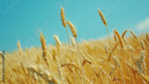 Fototapeta premium Golden Wheat Field Under Sunny Blue Sky