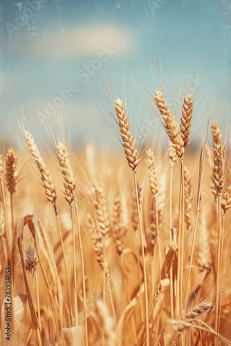 Fototapeta premium Golden Wheat Field Under Sunny Blue Sky