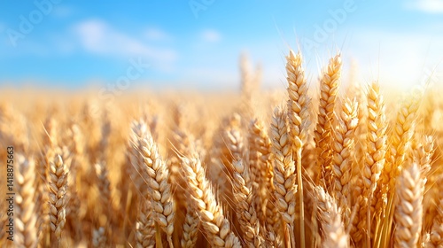 Fototapeta premium Golden wheat field under sunny sky