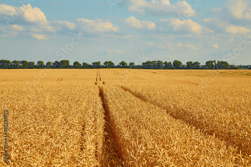 © Ryzhkov Oleksandr, Fototapeta premium Golden wheat field with blue sky