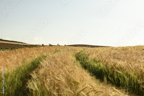 Fototapeta premium Golden Wheat Field with Wind-Swept Path