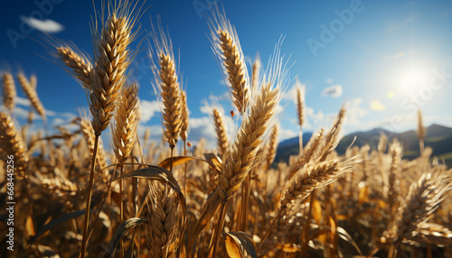 © Jemastock, Fototapeta premium Golden wheat fields in the summer, nature bountiful harvest generated by AI