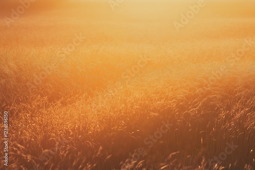 © Suresh Thangavel, Obraz premium Golden wheat fields under a vibrant sunset, warm orange and pink hues.