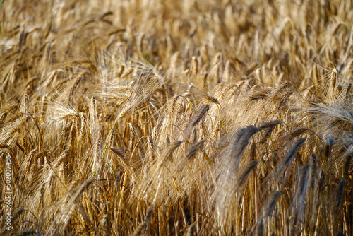 Fototapeta premium Golden wheat on field in sunset
