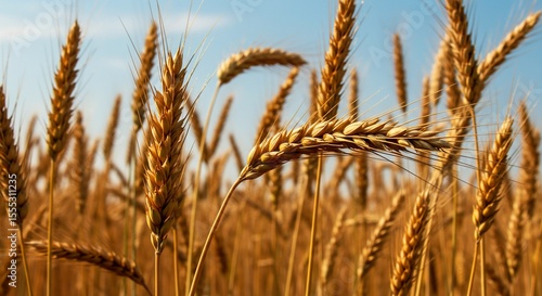 Fototapeta premium Golden Wheat Stalks Against a Bright Blue Sky