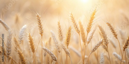 Fototapeta premium Golden Wheat Stalks Illuminated by Warm Sunlight in a Serene Agricultural Field