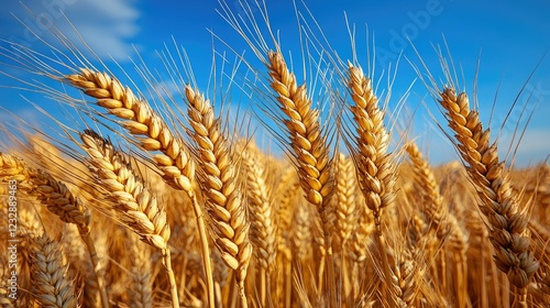 © M_H_L, Fototapeta premium Golden Wheat Stalks Under a Bright Blue Sky