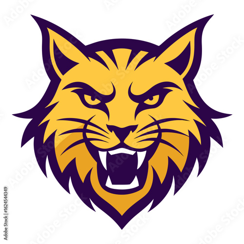 © Nobel Fahad, Obraz premium Golden Wildcat Logo with Violet Outline and Growling Expression on White