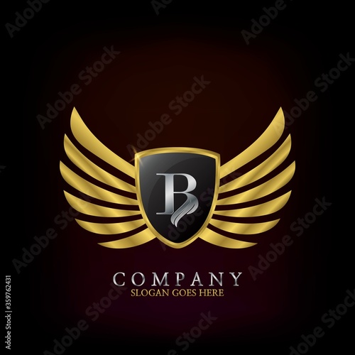 Obraz premium Golden Wing Shield Luxury Initial Letter B logo design concept.