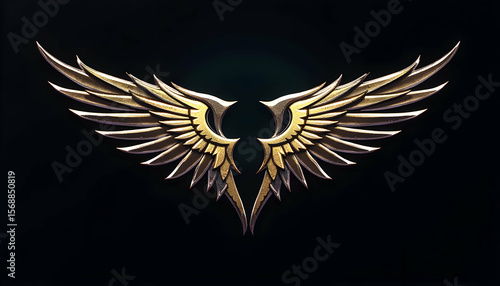 Obraz premium Golden Wings Emblem on Black Background for Design and Decoration