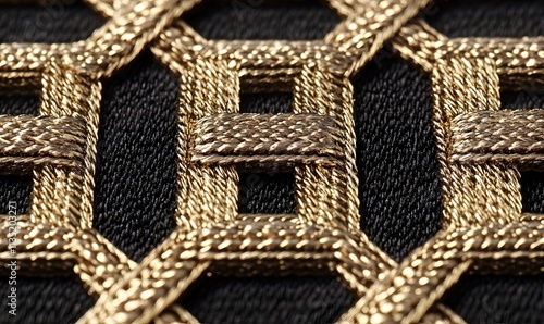 © Azril, Fototapeta premium Golden woven pattern on dark fabric background.