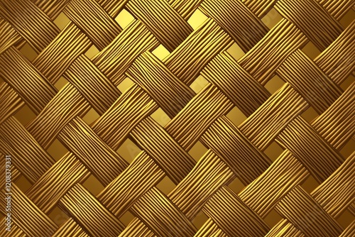 © Linda Space, Obraz premium golden woven texture featuring interlaced metallic strands with fine ribbed details for luxurious design background