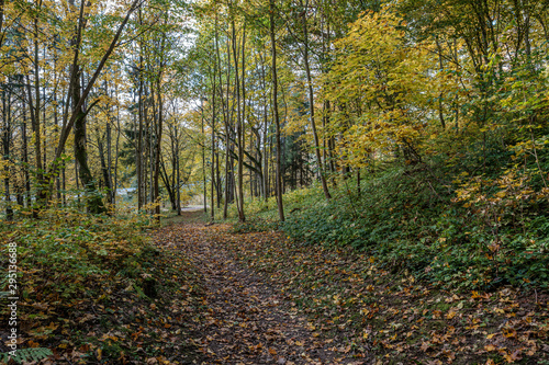 © Martins Vanags, Obraz premium golden yellow autumn road in sunny day