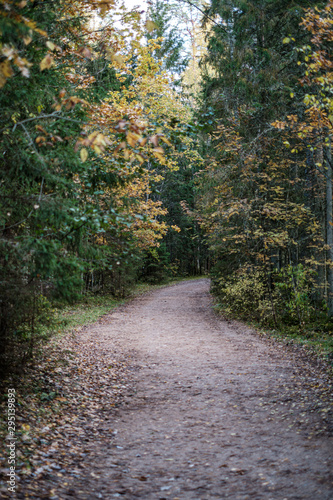 © Martins Vanags, Fototapeta premium golden yellow autumn road in sunny day