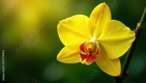 © jarin, Fototapeta premium Golden yellow orchid, dewdrop on petal, sharp focus , texture, golden, light