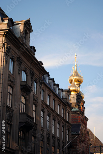 © aotearoa, Fototapeta premium Goldene Kuppeln hinter Hausfassade