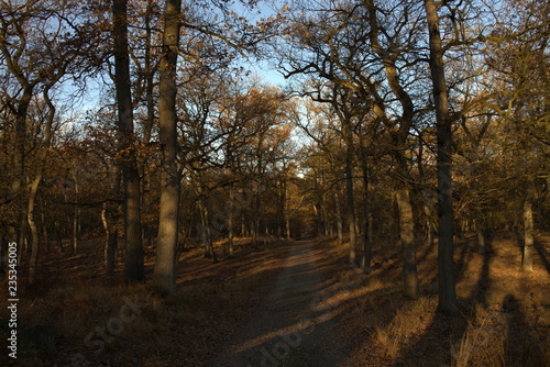 © Ines, Fototapeta premium Goldener Herbstwald mit Farnen in der Abendsonne