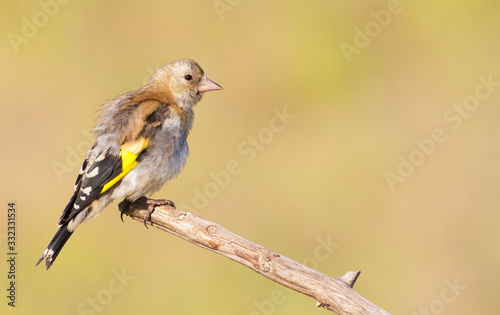 Fototapeta premium Goldfinch, Carduelis. Young bird. The bird sits on a branch