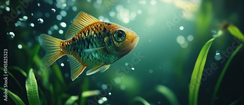 © Killian, Fototapeta premium Goldfish Aquarium Underwater Bubbles Plants
