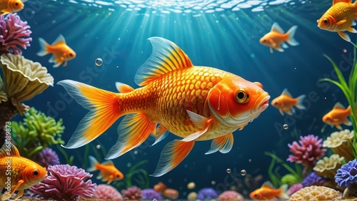 © BOJOShop, Fototapeta premium Goldfish in a Tropical Aquarium.