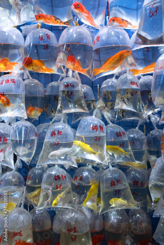 © wooooooojpn, Obraz premium Goldfish market in Hong Kong at night 夜の香港・金魚街