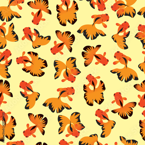Obraz premium Goldfish seamless pattern on yellow background.