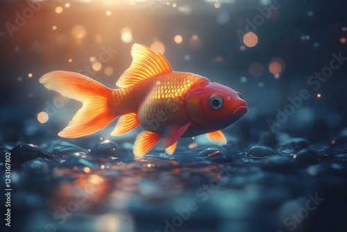 © D, Fototapeta premium Goldfish Serenity in Aquatic Glow: Underwater Scene with Bokeh Light Effects