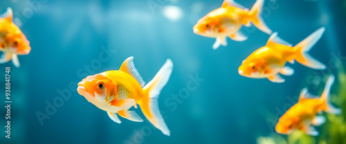 © Rysak, Fototapeta premium Goldfish Swimming in Blue Water