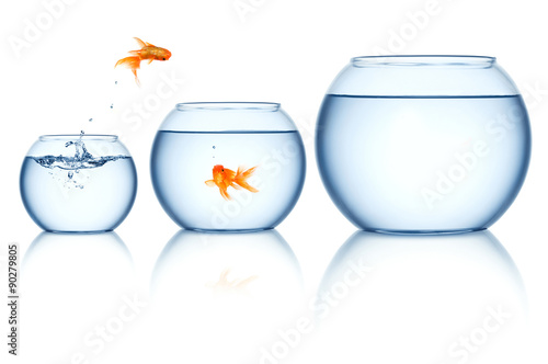 © Alexstar, Fototapeta premium Goldfishes in a fishbowls isolated on white background
