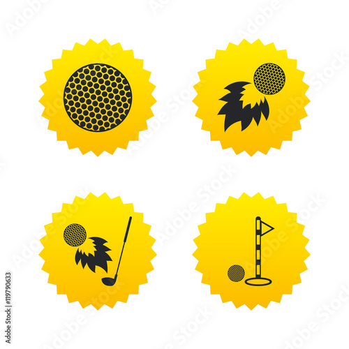 Fototapeta premium Golf ball icons. Fireball with club symbol.