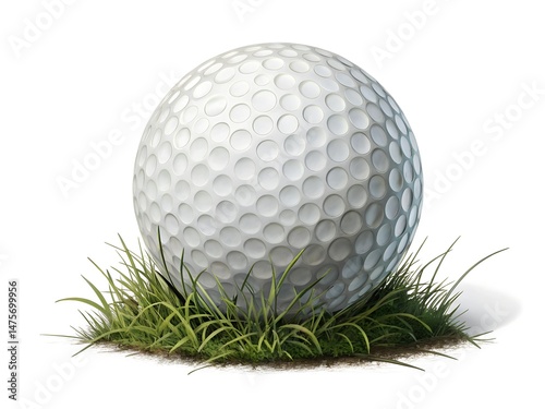 Fototapeta premium Golf ball isolated on white background. A white golf ball is sitting on a green grassy field.
