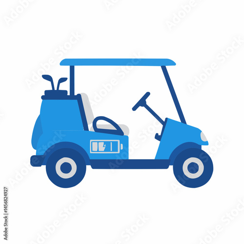 Fototapeta premium Golf cart graphic with clubs. The illustration has simple shapes, lines, and blue
