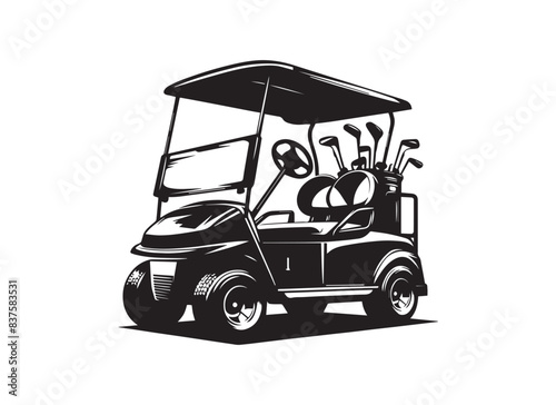 © Faysal Design House, Fototapeta premium Golf cart vector silhouette in black on a white background.