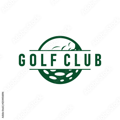 Fototapeta premium Golf club logo design and outdoor sport vector golf stick and ball template illustration