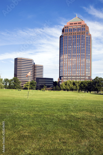 © Henryk Sadura, Fototapeta premium Golf Course in front of skyscrapers