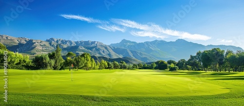 Obraz premium Golf course with mountain