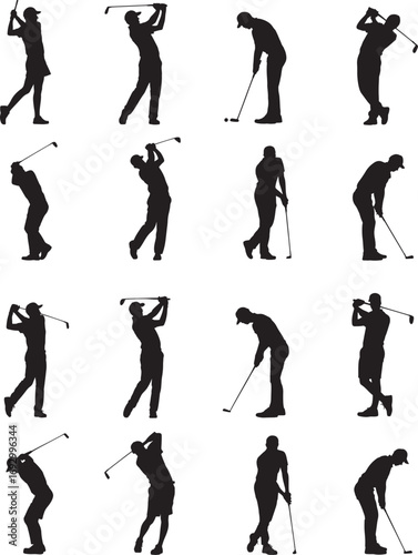 © MDKAYUM, Obraz premium Golf Player Silhouettes Vector Set | Sports Illustration and Action Poses