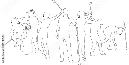 Fototapeta premium Golfers Golfing Silhouette Golf People Silhouettes