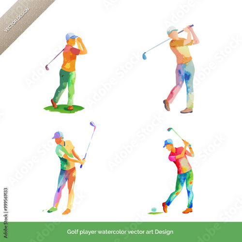 © nazmulmallik44, Obraz premium Golfing Action Player Watercolor Vector Art Set