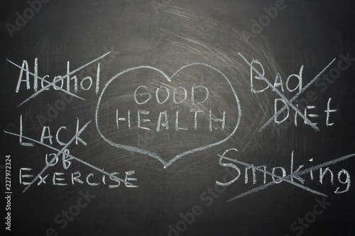 © Anton, Fototapeta premium good health tips on a black board. A concept for doctors