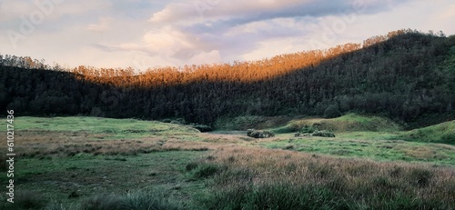 © Fathunisa, Fototapeta premium Good Morning from Savanna Pangonan Hill, Dieng, Central Java, Indonesia