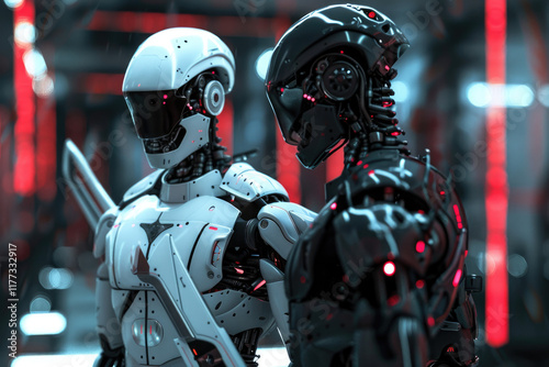 Naklejka premium Good vs. Bad AI: Exploring the Duality of Artificial Intelligence