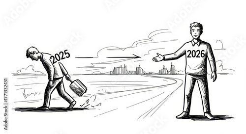 Obraz premium Goodbye 2025 Welcome 2026 Illustration Concept