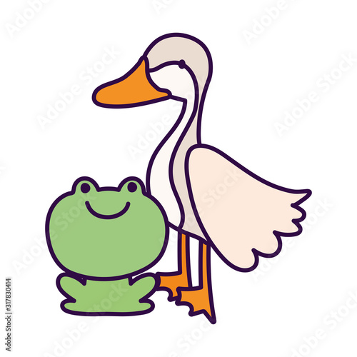 © Stockgiu, Fototapeta premium goose and frog farm animal cartoon