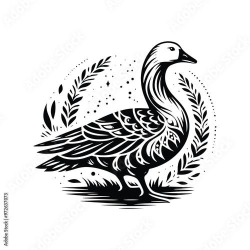 Obraz premium Goose bird in bohemian black and white silhouette illustration