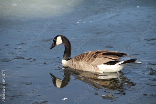 Fototapeta premium Goose On Lake Of Ice, William Hawrelak Park, Edmonton, Alberta
