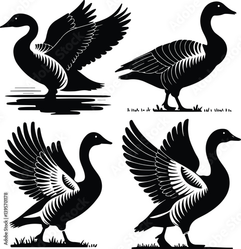 Fototapeta premium Goose Silhouette Set for Nature and Wildlife Design Projects